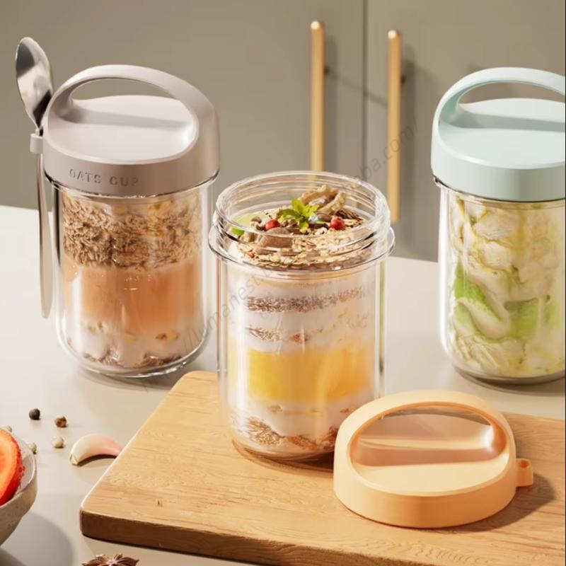 Wholesale 430ML New Breakfast Cups Oatmeal Cereal Nut Yogurt Salad Cup Leakproof Glass Oats Container With Lid Spoon Food