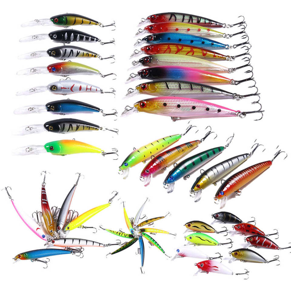 Wholesale 43pcs/set HENGJIA Minnow Crank Lure Mixed Artificial Hard Baits Kit Minnow Fishing Lures Set Lure Combo