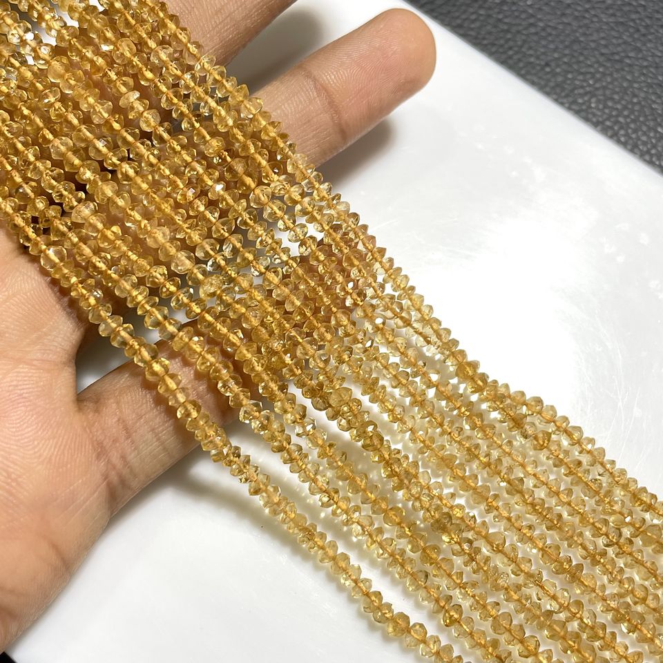 Wholesale 4mm Citrine Quartz Faceted Rondelle Beads Natural Gemstone for Jewelry Making