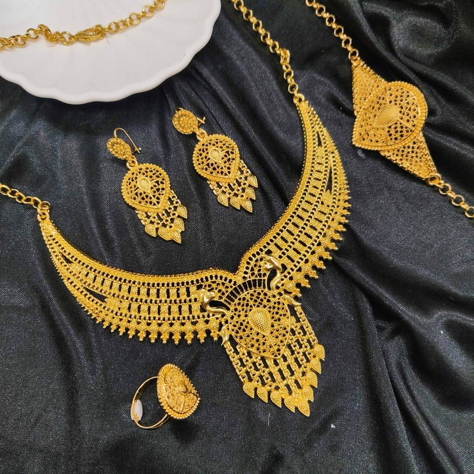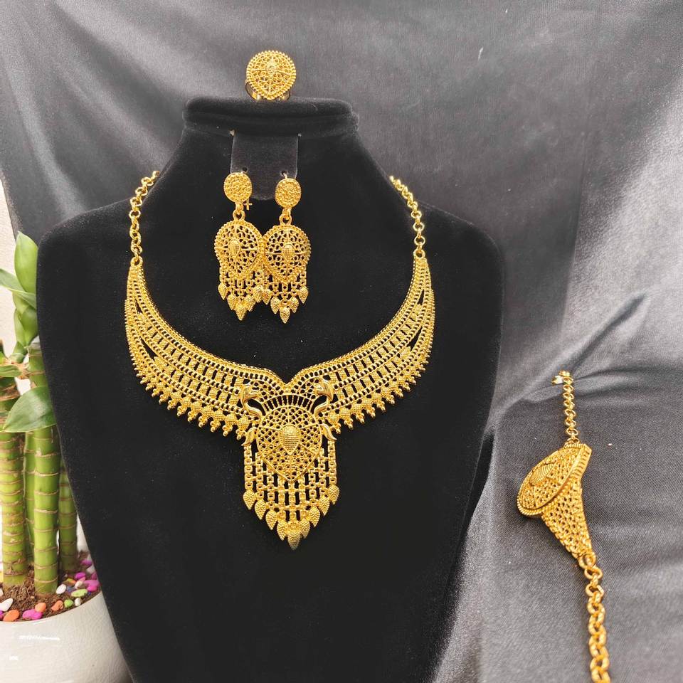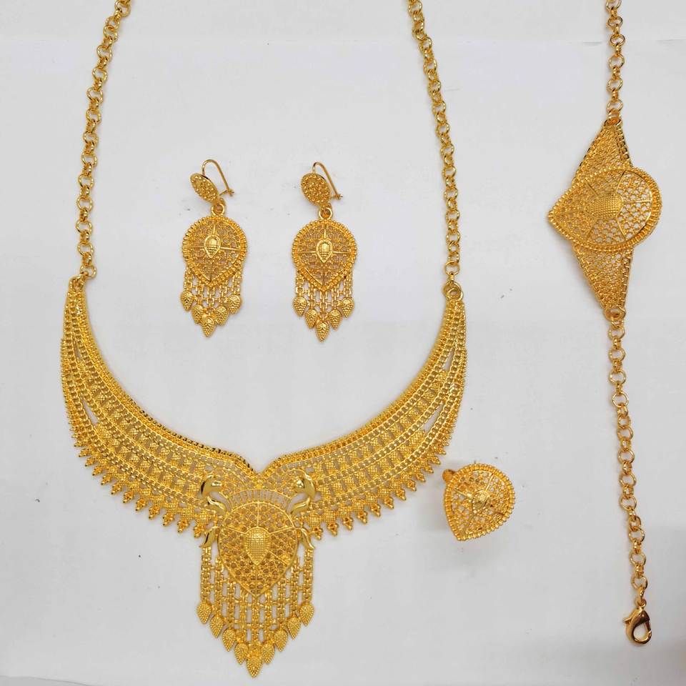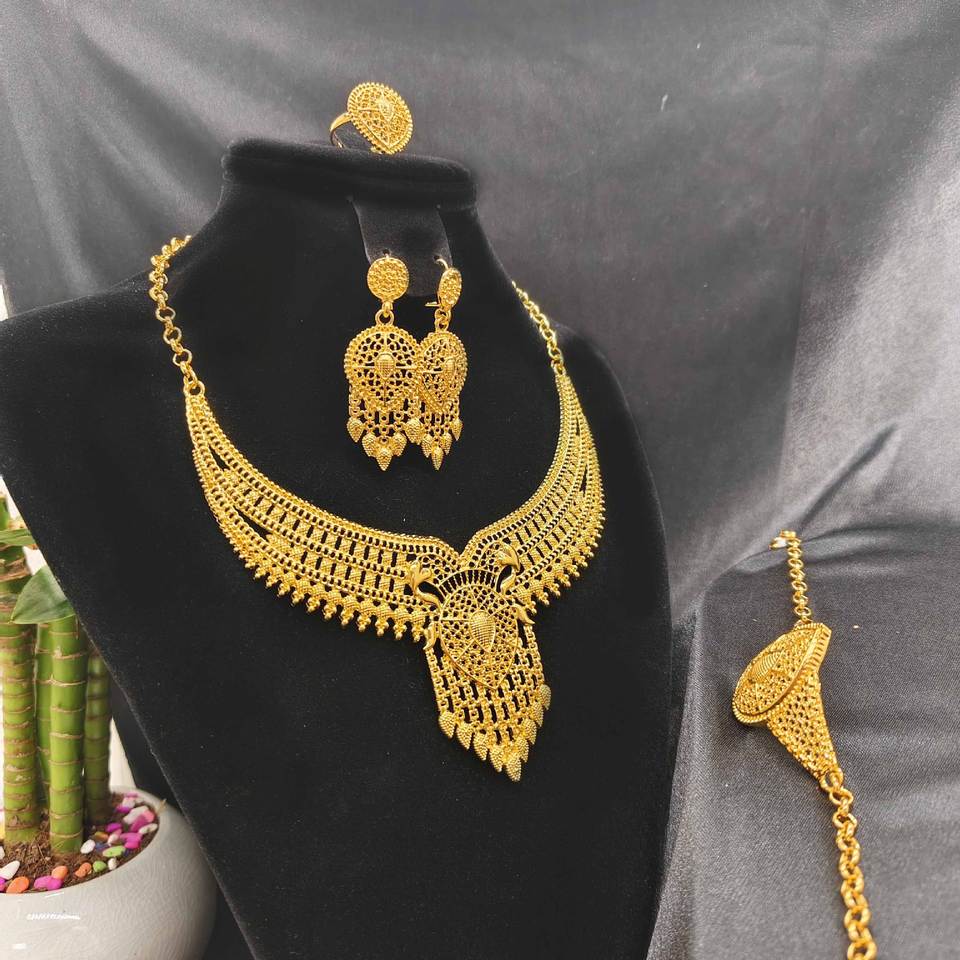 Wholesale 4pcs Jewelry Set Luxury Women Bridal Wedding Necklace Bracelet Earrings Rings Dubai Gold Jewelry 24k