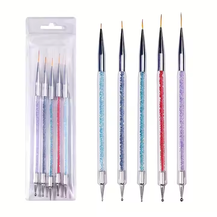 Wholesale 5-Piece Multi Function Nail Art Brush Set Double-Head Pen With Plastic Handle Dotting Tools