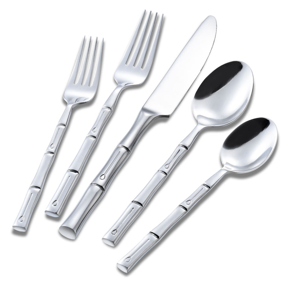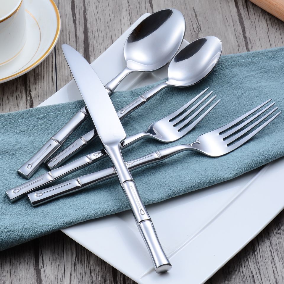 Wholesale 5 Pieces Stainless Steel Bamboo Handle Silverware Thick Cutlery Wedding Hotel Restaurant Flatware Set