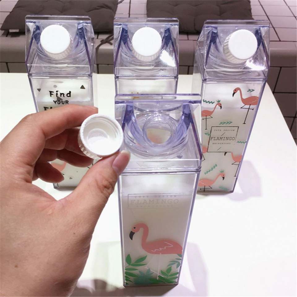 Wholesale 500Ml 1000Ml Plastic Clear Leakproof Minimalist Dishwasher Safe Milk Carton Water Bottle for Party