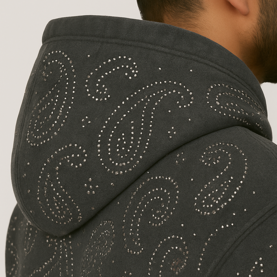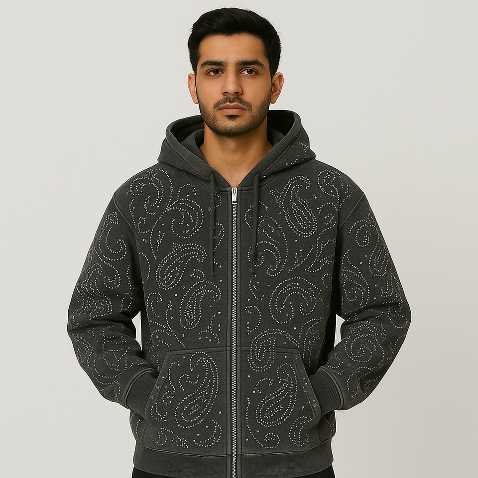 Wholesale 500gsm Fleece Embroidered Double Zipper Hoodies OEM Oversize Fit Hooded Collar No Drawstring Custom Logo Heavyweight