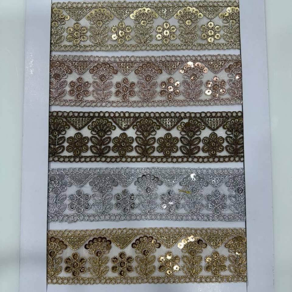 Wholesale 50MM Embroidery Lace Trim on Polyester Net with Sequins and Metallic Thread for Luxury Traditional Garments Dresses