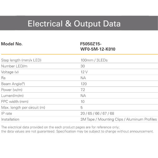 2700K, 3000K, 3500K, 4000K, 4500K, 5000K, 5700K, 6500K