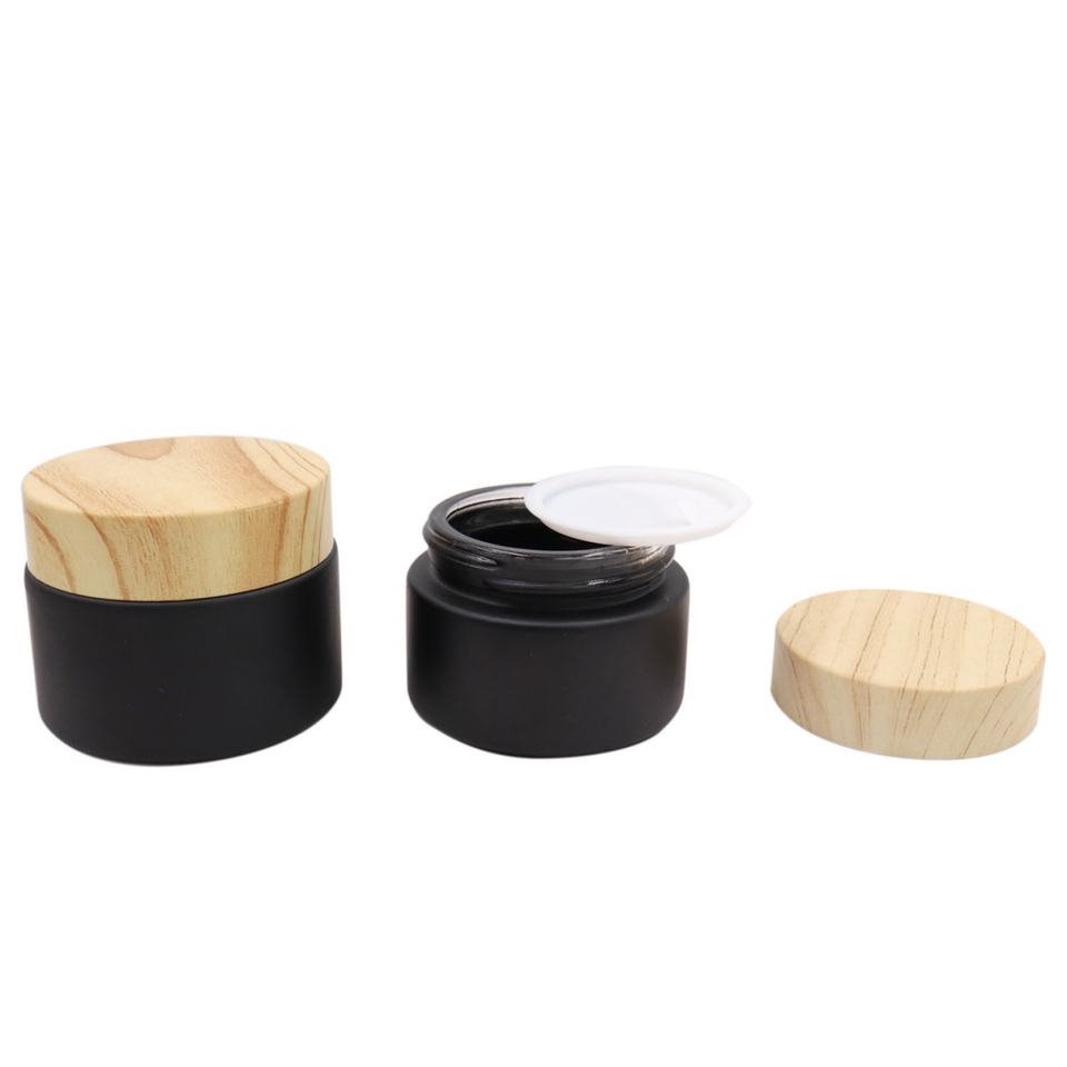 Wholesale 5g 10g 30g 50g Matte Black Face Cream Jar Containers 1 Oz Glass Jars with Plastic Wood Grain Lid