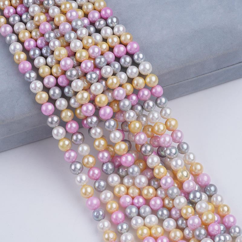 Wholesale 6-7mm Natural Freshwater Pearl Beads Round Candy Color Handmade DIY Necklace Accessories White Pearls Color
