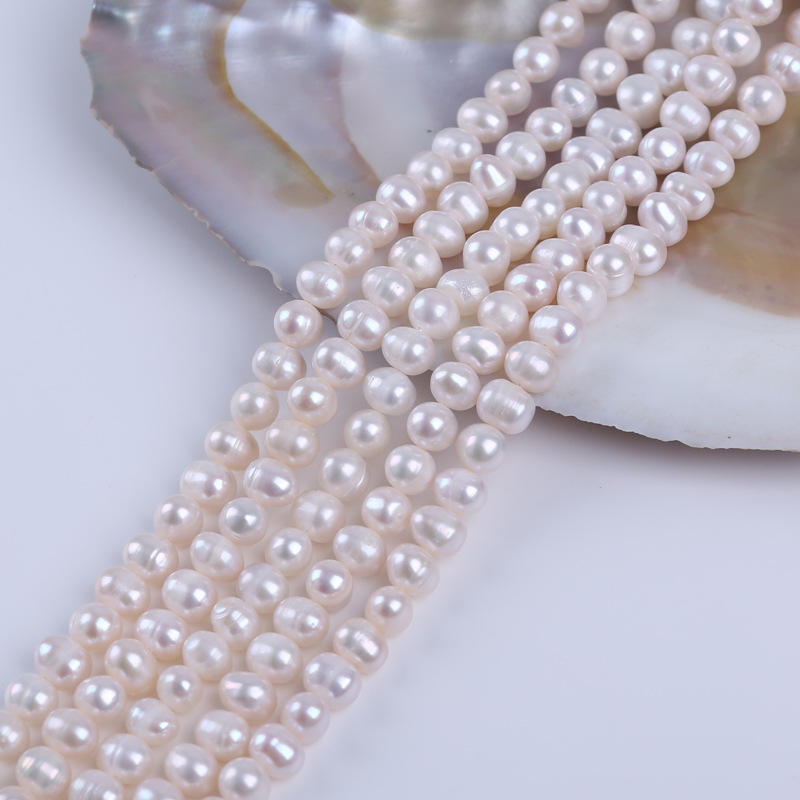 Wholesale 6-7mm Punch Bead String Nearly Round Freshwater Pearl DIY Handmade Loose Pearls Accessory