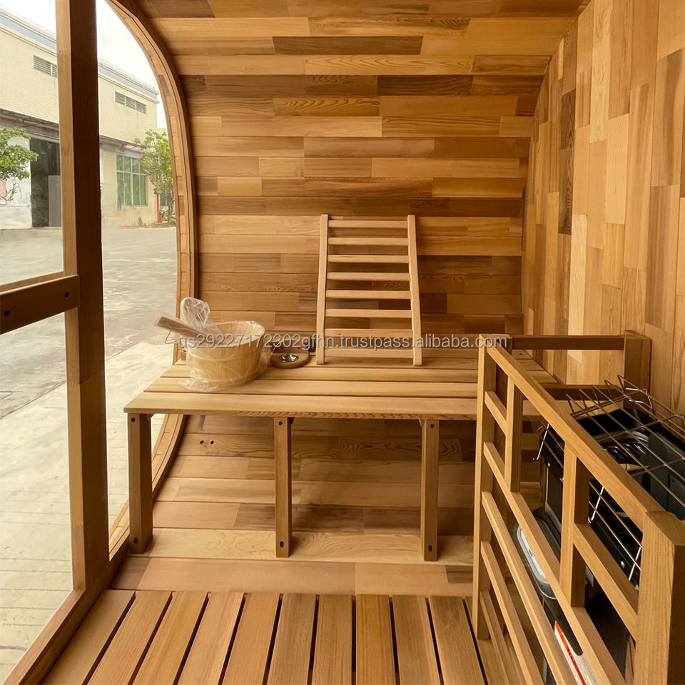 Wholesale 6-Person Red Cedar Hemlock Commercial Eco-Friendly Outdoor Barrel Square Sauna Dry Steam Room Health Benefits 1-Year