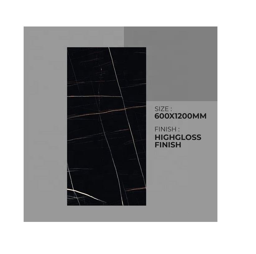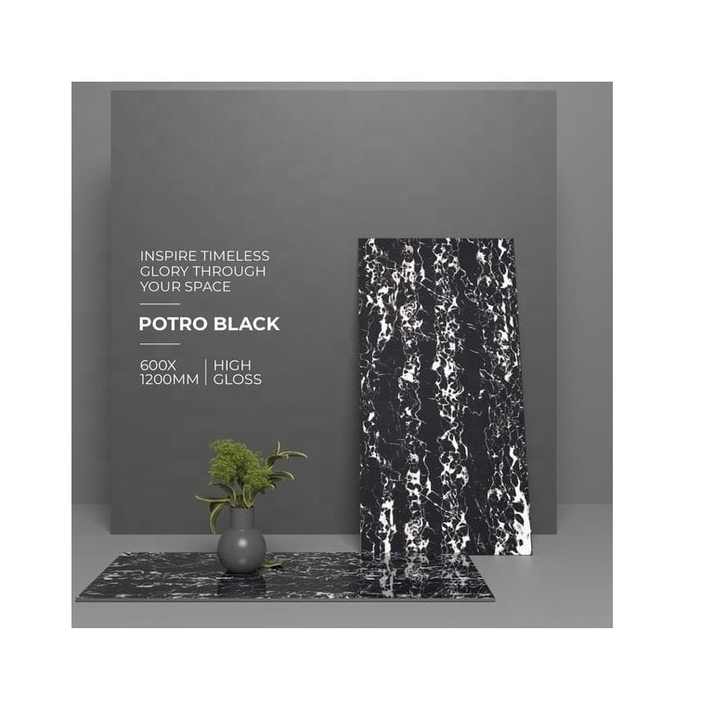 Wholesale 600x1200 High Gloss Black Porcelain Tiles for Living Room Bedroom Interior Wall Design Firebrick for Bathroom Use