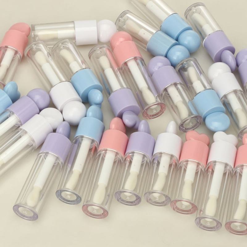 Wholesale 6ml PETG Transparent Spherical Lip Gloss Tube with Screw Cap Pink White Heart-Shaped Cosmetic Lip Glaze
