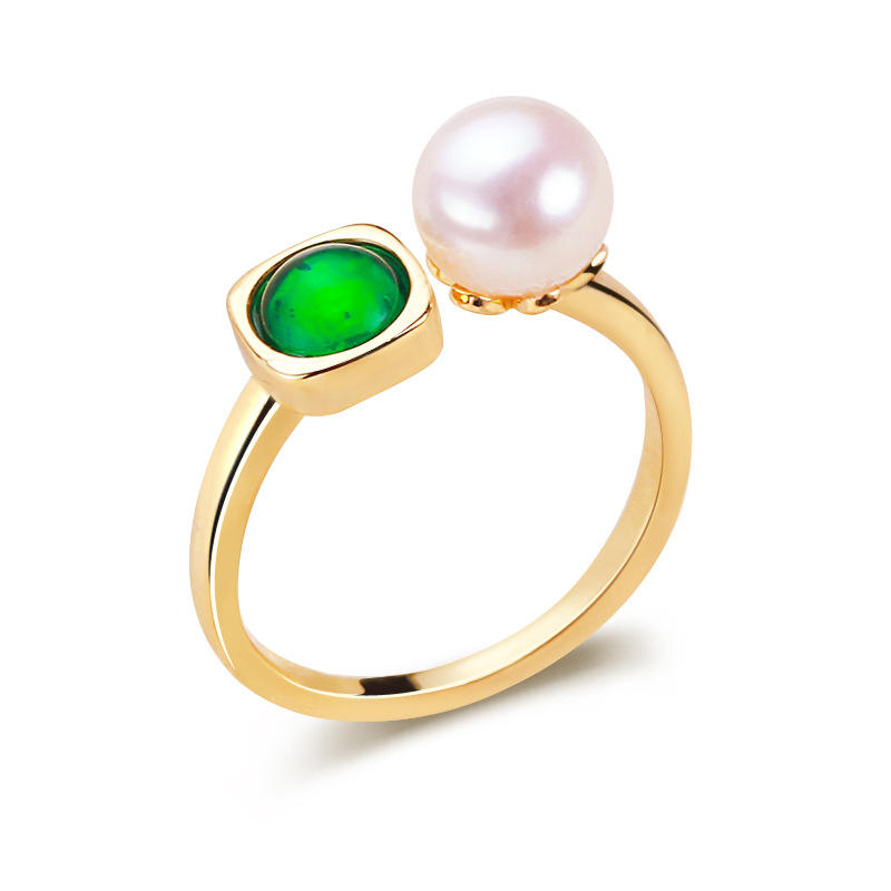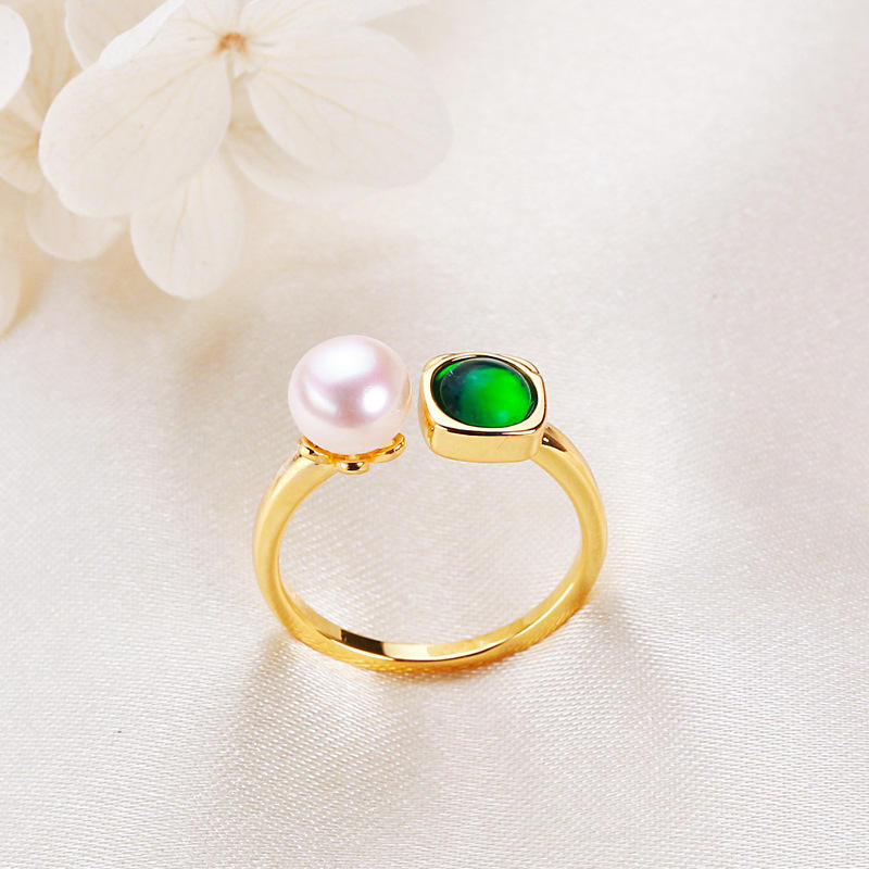 Wholesale 6mm White Round Pearl Fashion Ring Zhuji Copper Gold-Plated Freshwater Live Streaming Selection Wholesale Jewelry
