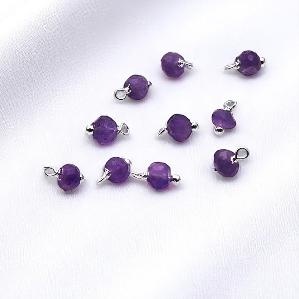 Wholesale 6x4mm Round Faceted Tiny Gemstone Charms 925 Silver Wire Wrapped Charms for Jewelry Making
