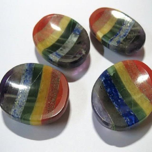 Wholesale 7 Chakras Real Crystal Worry Stones Natural Agate Palm Stone Reiki Healing Thumb Stone Bonded Healing Gemstone