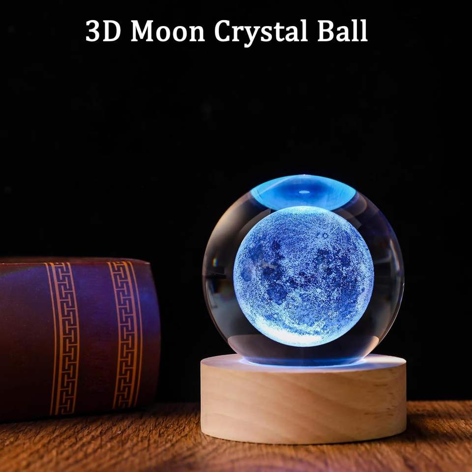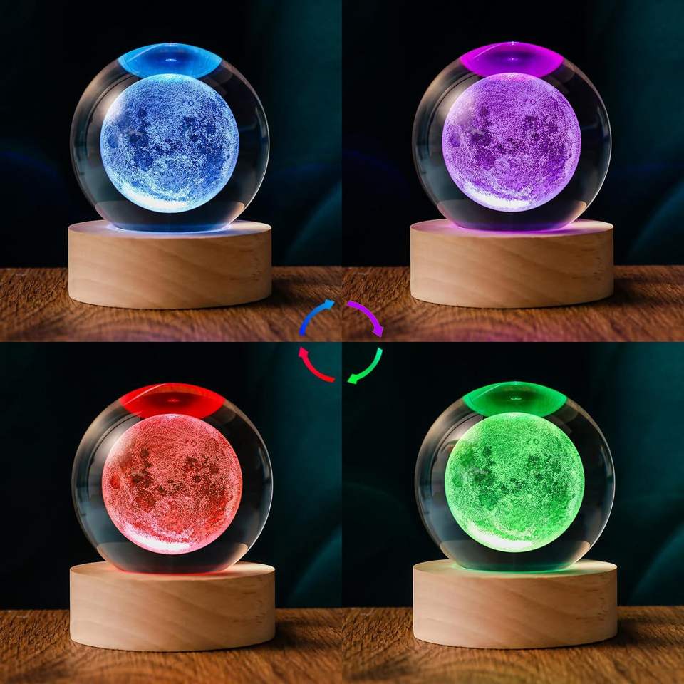 Wholesale 7 Colors RGB LED Modern 3D Crystal Ball Night Lamp with Luminous Celestial Design USB Wooden Base