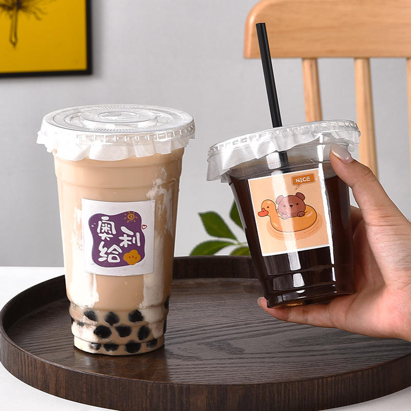 Wholesale 700ml 500ml PET U-Shaped Plastic Cups Lids Custom Logo Bubble Tea Coffee Reusable Boba Cups Thick Hard Disposable PET