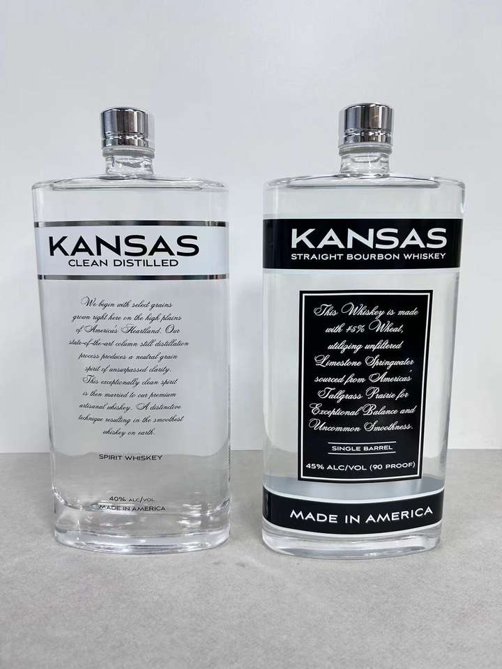 Wholesale 750ml Transparent Glass Tequila Wine Brandy Bottles Custom Printed Cork Seal Drop Screw Cap Hot Sale