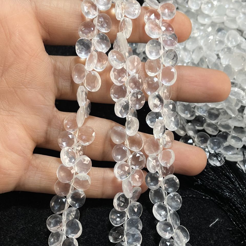 Wholesale 7MM White Calibrated Ice Quartz Faceted Heart Shape Briolette Beads Creative Jewelry Design with Stone Beads