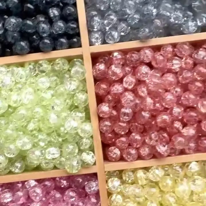 Wholesale 8/10mm Solid Color Burst Ice Crack Round Glass Beads Jewellery Making DIY Bracelet Necklace Accessories