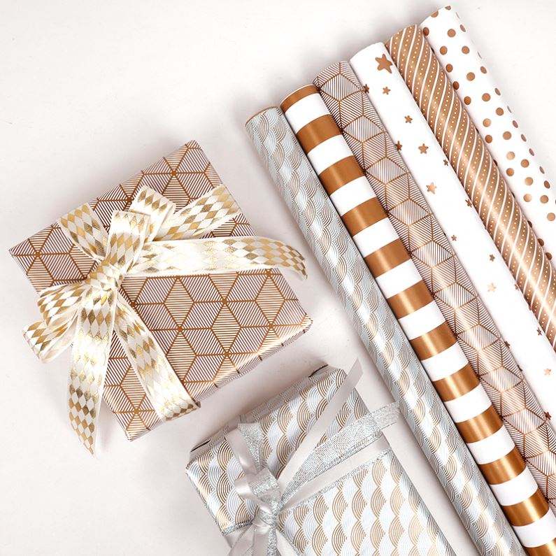 Wholesale 80g Birthday Gold Stamping Art Paper Tissue 43*300cm Gift Luxury Custom Packaging Wrapping Paper Roll