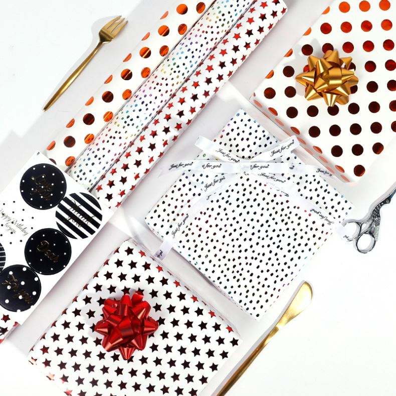 Wholesale 80g Birthday Hot Stamping Art Paper Tissue 43*300cm Gift Luxury Custom Packaging Wrapping Paper Roll