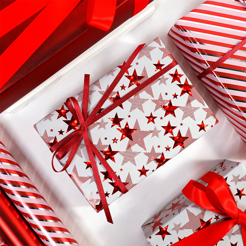 Wholesale 80g Christmas Stars and Stripes Kraft Paper Tissue 43*300cm Gift Luxury Custom Packaging Wrapping Paper Roll