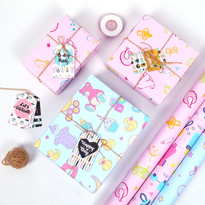 Wholesale 80g Cute Animal Glossy Baby Birthday Paper Wrapping Paper Roll