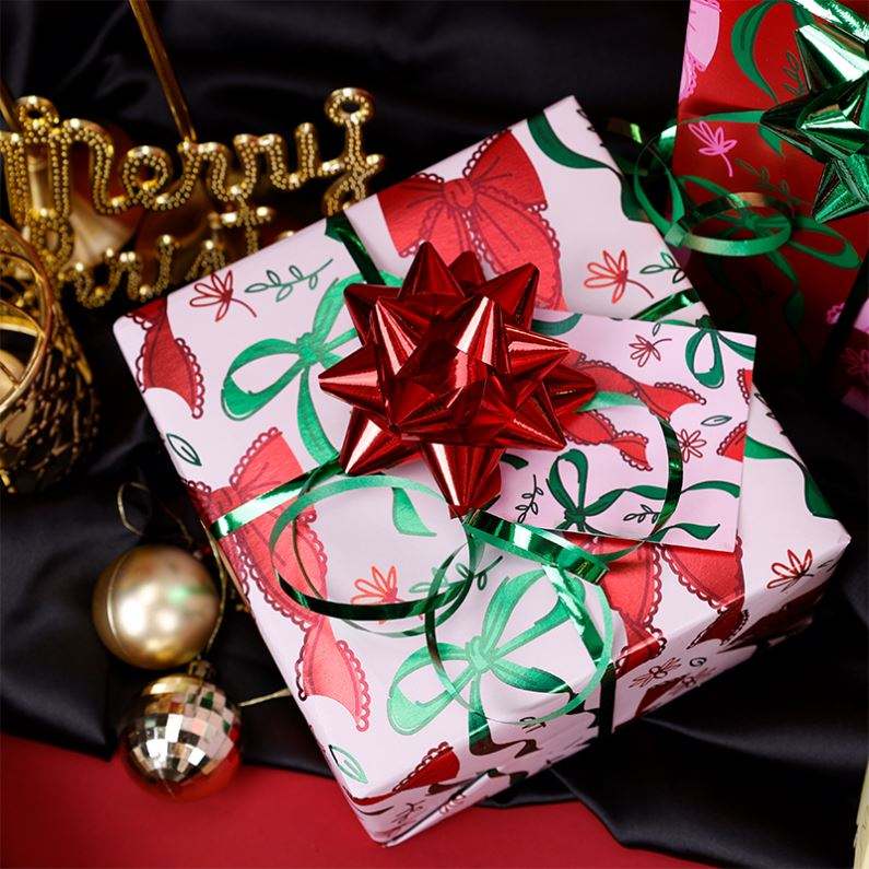 Wholesale Disposable 80gsm Coated Silicone Metallic Art Paper Christmas Wrapping Paper Roll 43*300cm Luxury Gift Packaging