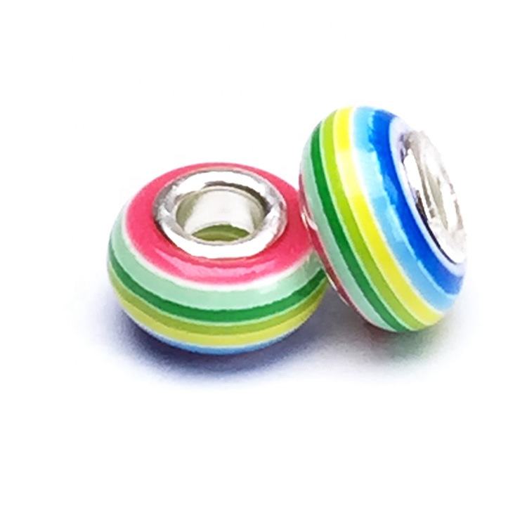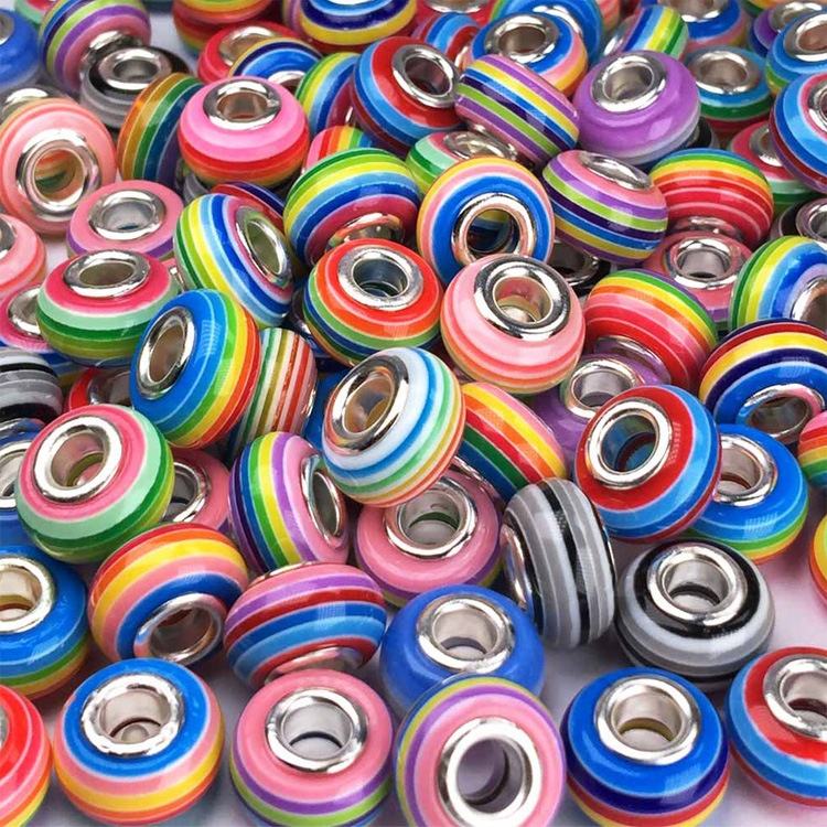 Wholesale 8x14mm Rainbow Striped Resin Beads Big Hole Bead for Jewelry Making Bracelet DIY
