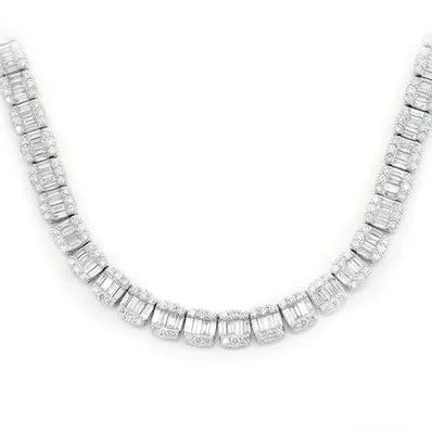 Wholesale 925 Silver Iced Out Tennis Chain 22 Inch VVS DEF Baguette Moissanite Diamond Necklace for Men Women Hip Hop Jewelry