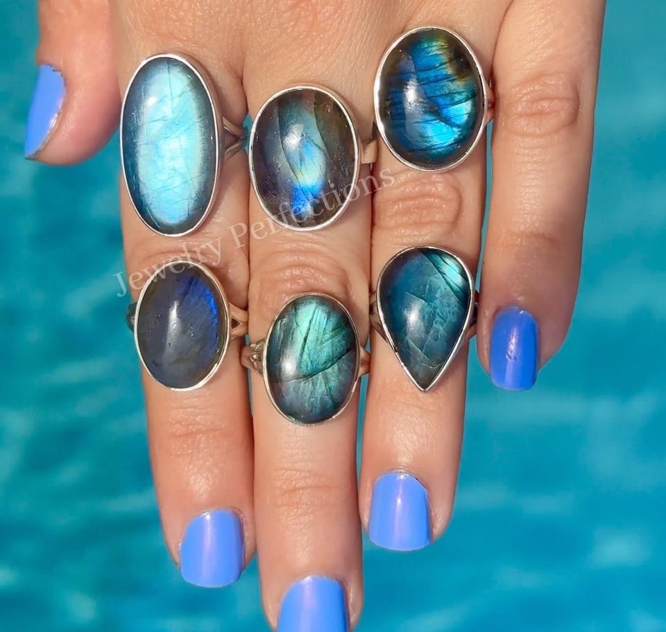 Blue Labradorite Silver Plated Rings
