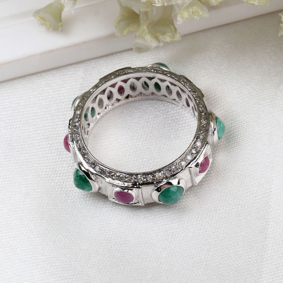 Ruby & Emerald Gemstone 925 Solid Sterling Silver Ring