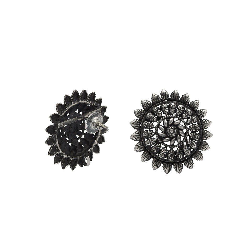 Indian Artisan Handmade Jewelry 925 Sterling Oxidized Silver Ethnic Style Stud Earrings for Woman Girls Wholesale Price Supplier