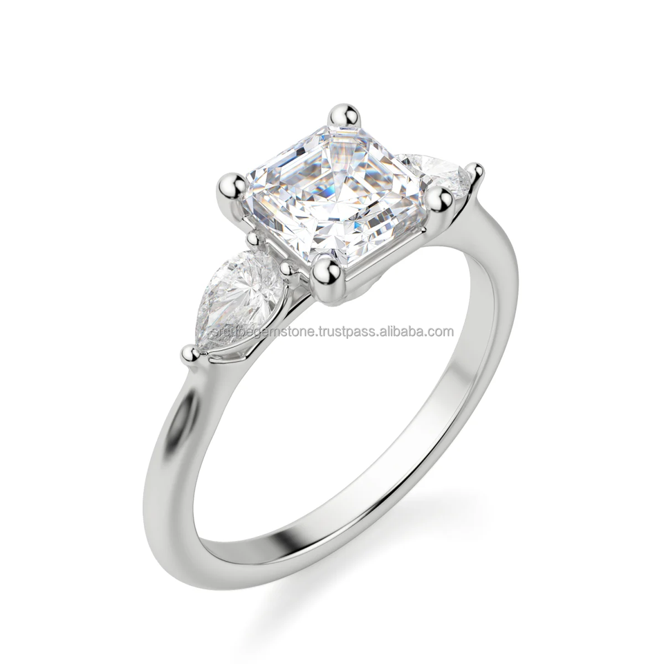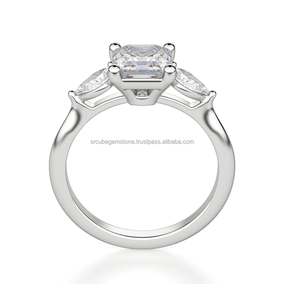 Wholesale 925 Sterling Silver 3CT Engagement Ring 3 Asscher Pear Cut Lab Grown Diamond Wedding Promise Band Fine Toe Ring Gift