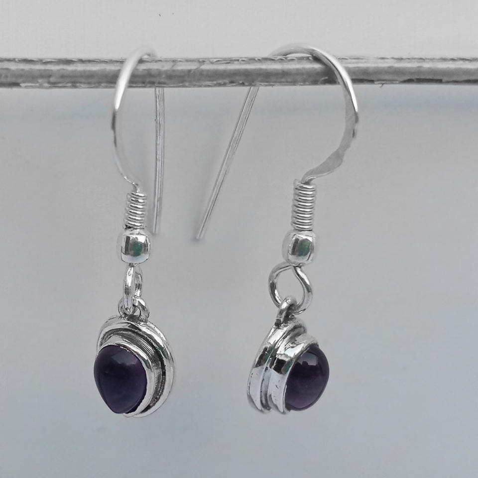 Wholesale 925 Sterling Silver Amethyst Cabochon Drop Earrings Cute Gemstone Jewelry for Women Girls' Wedding Party Christian