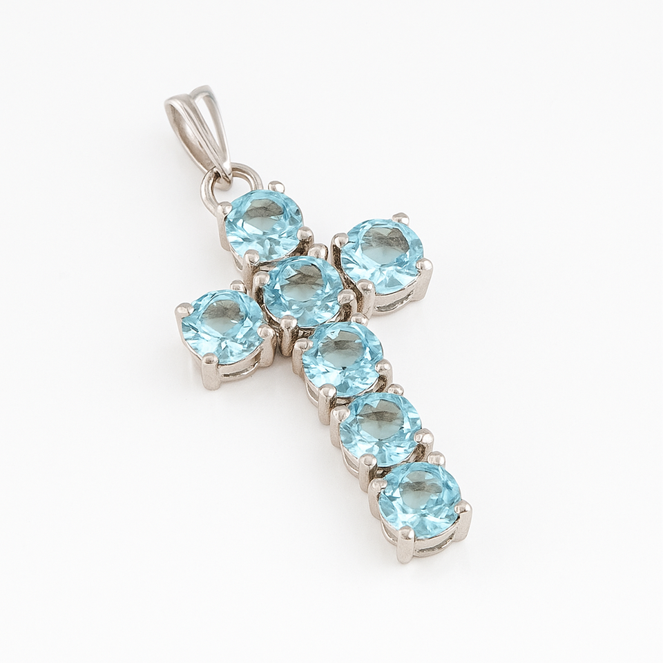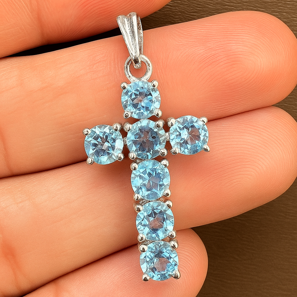 Wholesale Rhodium Plated 925 Sterling Silver Blue Topaz Cross Pendant Womens Religious Jewelry Exporter