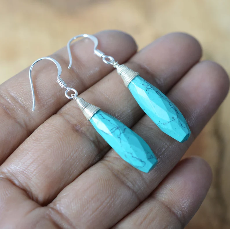 Wholesale 925 Sterling Silver Blue Turquoise Gemstone Hoop Earrings For Women Drop Dangle Design With Wire Hook Elegant Jewelry