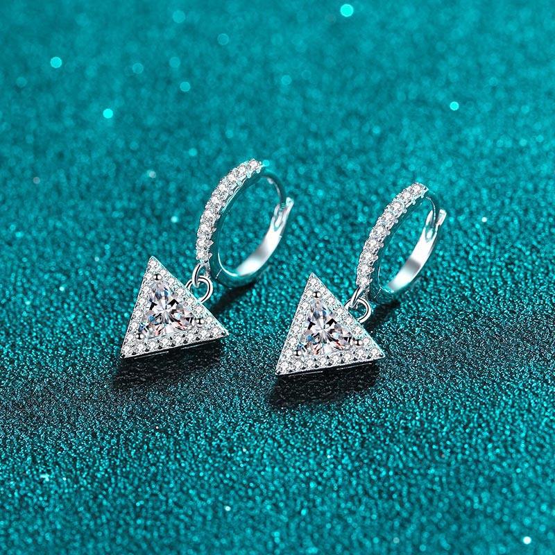Wholesale 925 Sterling Silver Drop Earrings for Women's Triangle Moissanite Rhodium Plated Trendy Style by Manufacturers