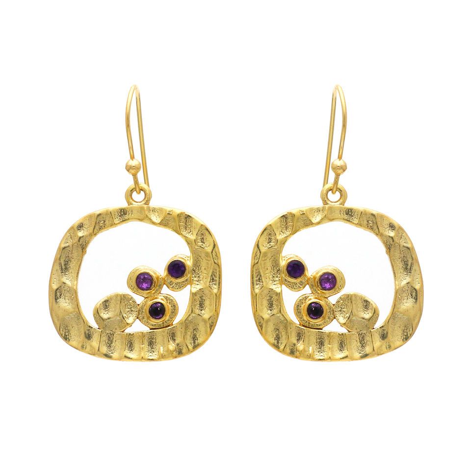 Wholesale 925 Sterling Silver Drop Earrings High Quality Natural Amethyst Gemstone Gold Plated Cute for Weddings Parties Gifts