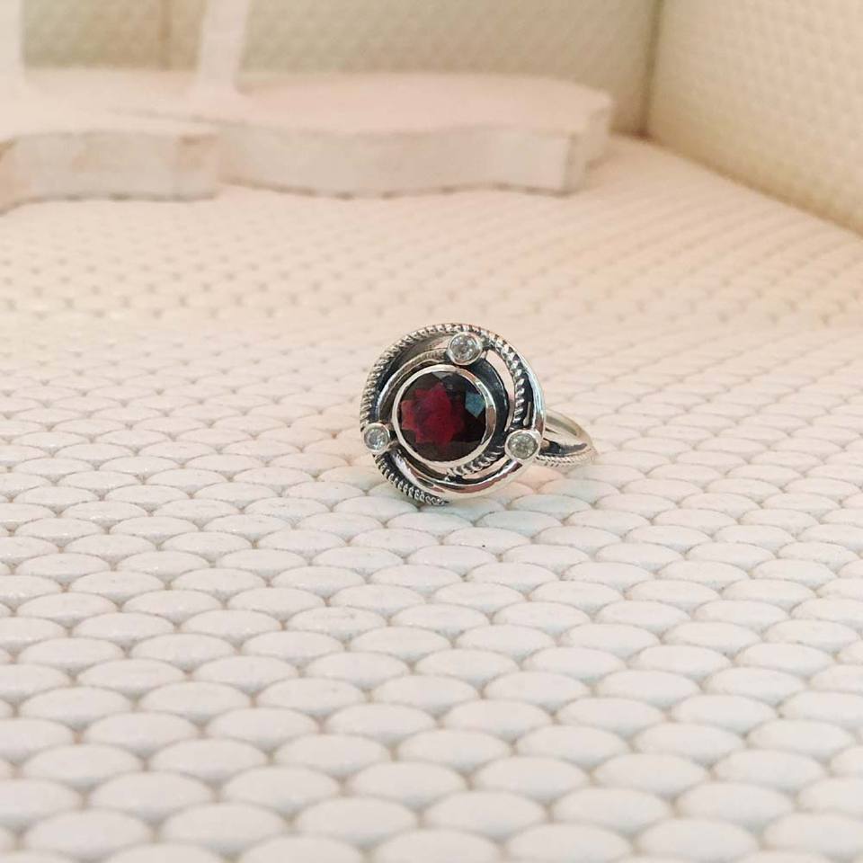 Wholesale 925 Sterling Silver Engagement Rings for Women Casual Wedding & Party Wear Garnet CZ Diamond Bezel Set Ladies' Fingers