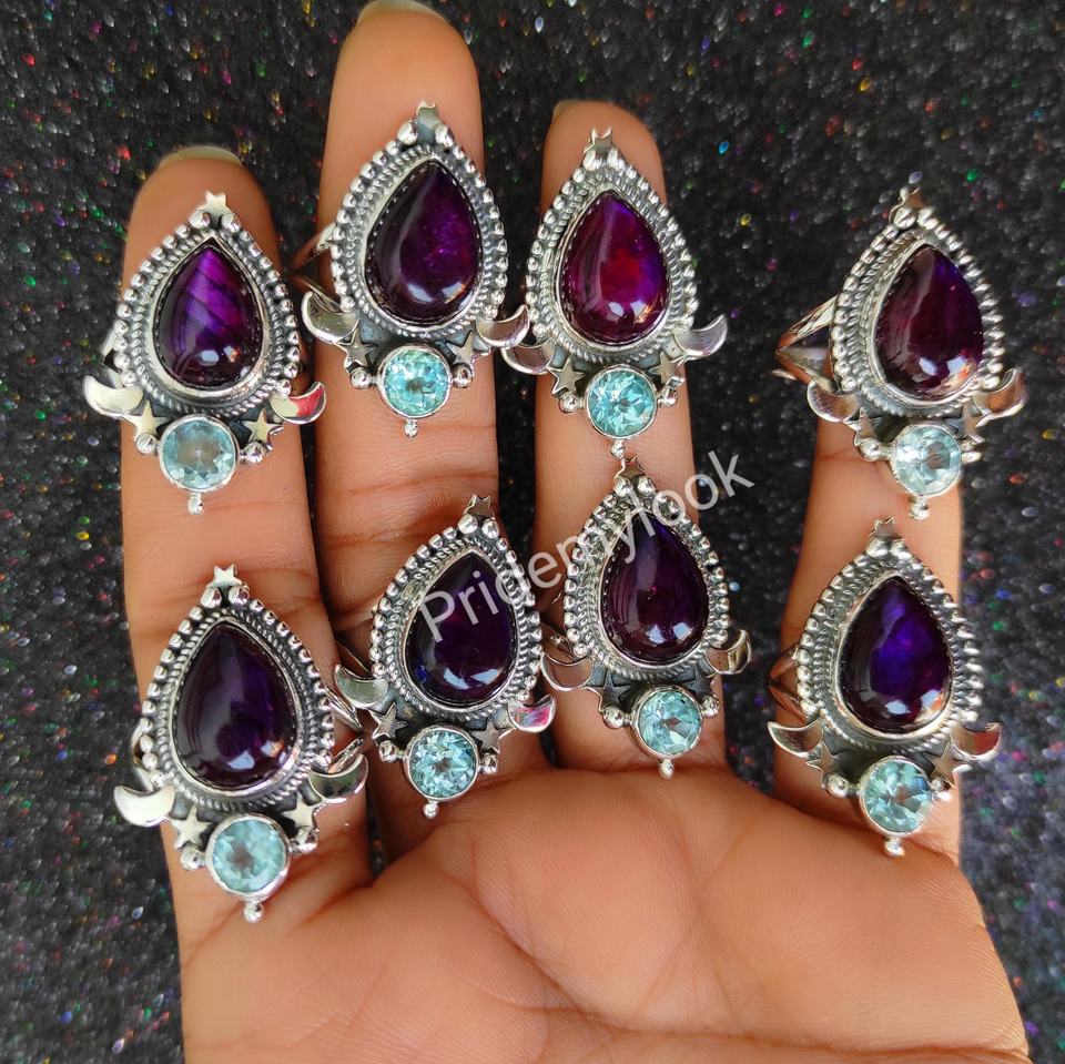 Keyword:925 Sterling Silve Ring, purple labradorite ring