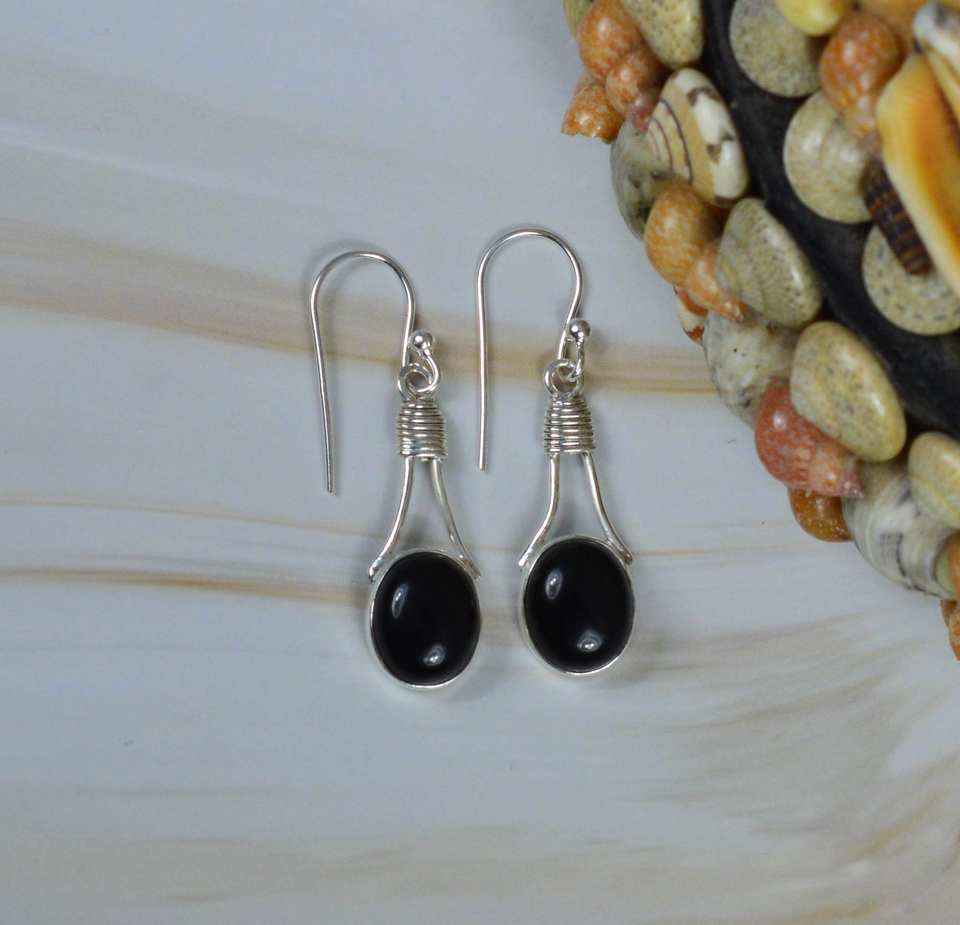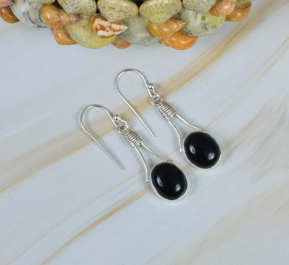 Wholesale 925 Sterling Silver Gold Plated Hook Earrings Genuine Black Onyx Oval Shape Gemstone Handmade Anniversary Parties