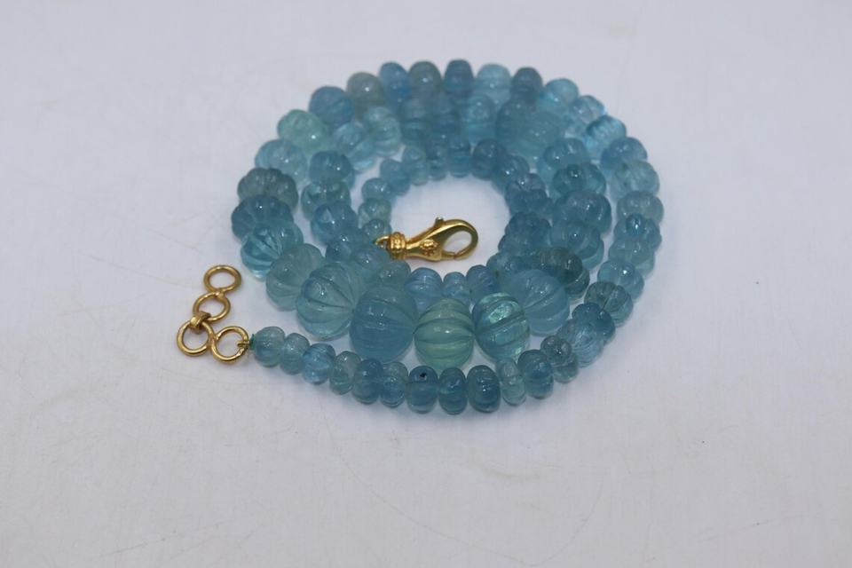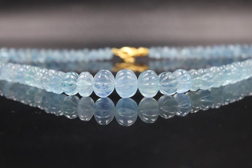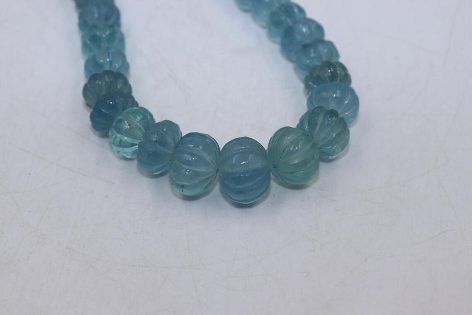 Product name:Blue Aquamarine Smooth Carving Melon Shape Beads Necklace