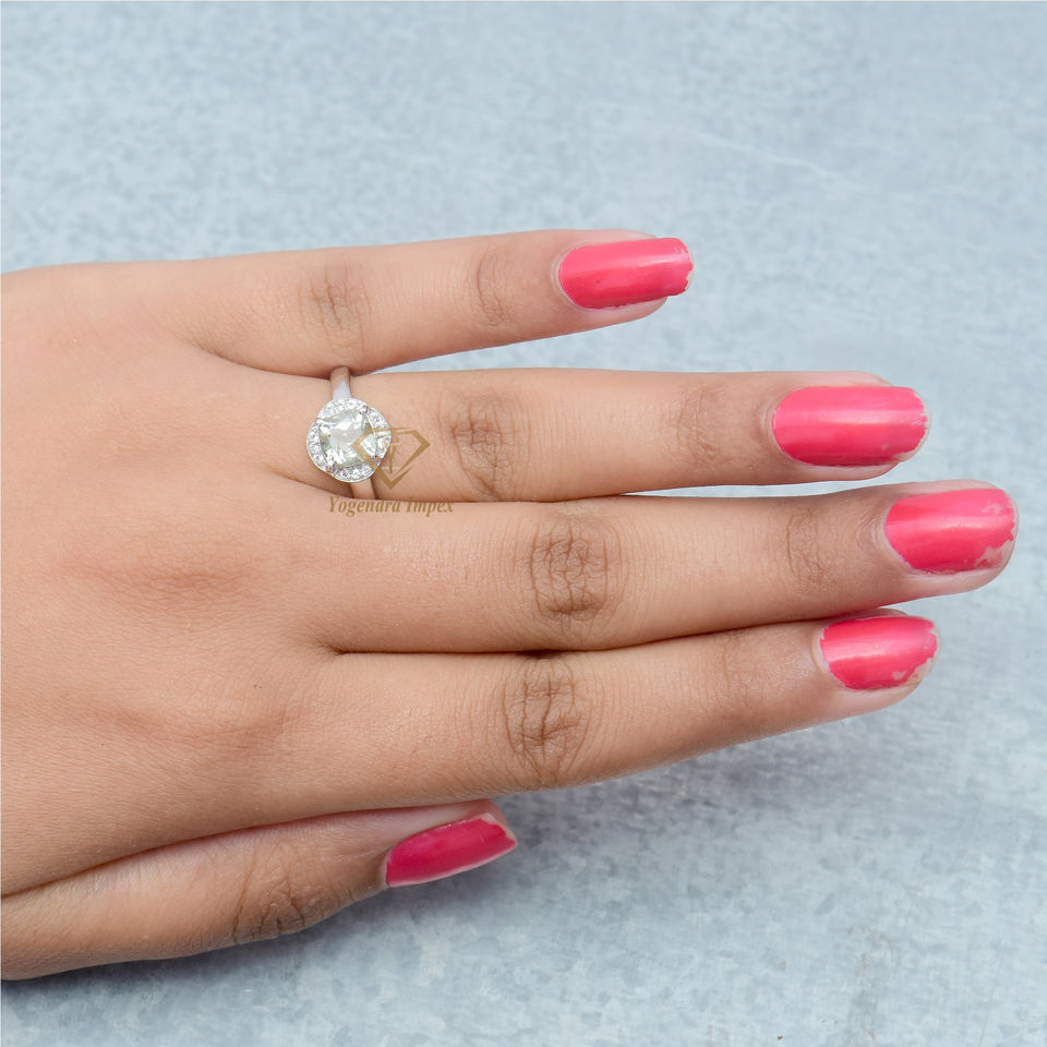 Wholesale 925 Sterling Silver Gorgeous Natural Green Amethyst Gemstone Ring Handmade Prong Set CZ Jewelry Anniversaries Parties