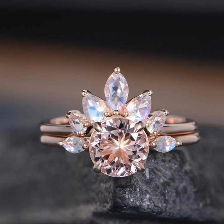 Wholesale 925 Sterling Silver Jewelry Rose Gold Plated Morganite With Natural Moonstone Engagement Ring Set