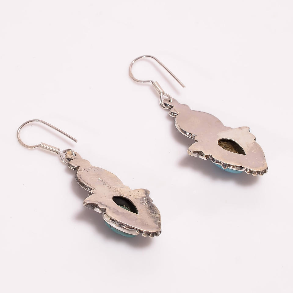 Wholesale Handmade 925 Sterling Silver Drop Earrings Classic Wending Synthetic Turquoise Gemstone Fine Dangle Jewelry 7x10mm