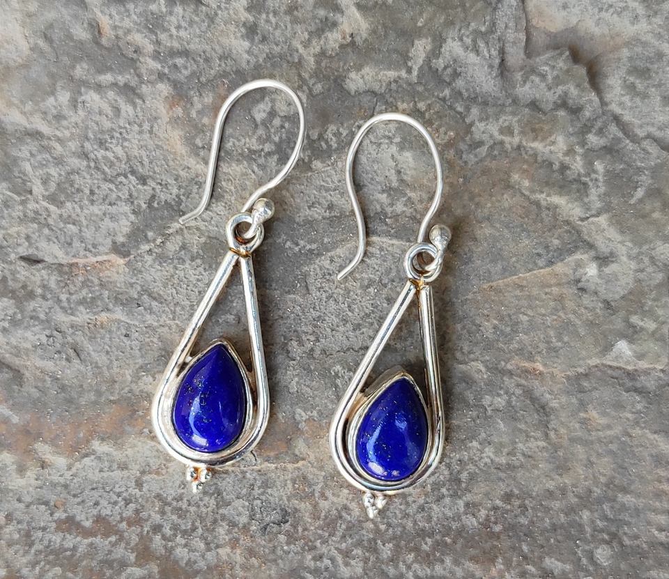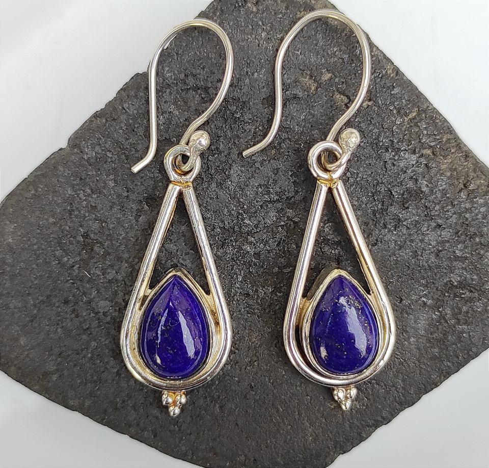 Wholesale 925 Sterling Silver Pear Shape Drop Earrings New Design Lapis Lazuli Gemstone Diamond & Pearl Fashionable Party Gift