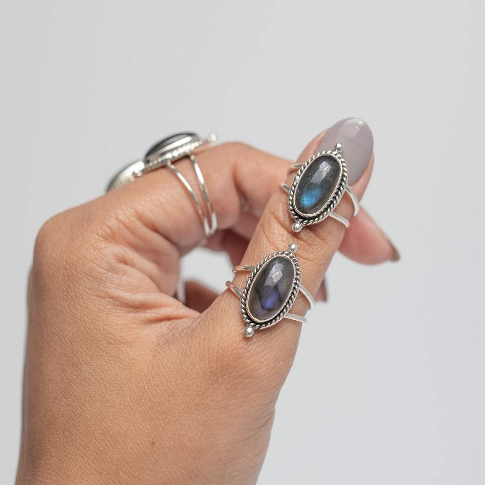Wholesale 925 Sterling Silver Plated Handmade Oval Labradorite Statement Rings Latest Fashion Bulk Jewelry Stylish Steel Rings