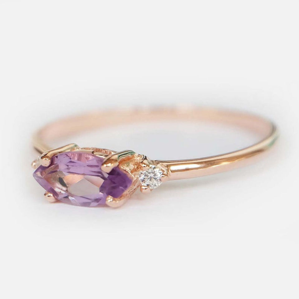 Wholesale 925 Sterling Silver Plated Rose Gold Gemstones Fashionable Dainty Natural Amethyst Engagement Ring Jewelry Set